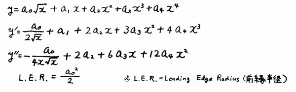 BX−3 ┬ ******なお、BX−3においては L.E.R.=2%としたが、NACA 6シリーズ翼では最大肉厚15%で、63系、64系が約1.6%、65系が1.5%程度であるので、L.E.R.をもう少し小さい1.8%としたBX−3A翼型も平行して検討する。他条件はBX−3に同じ。a値も多少の幅を持たせて検討する。