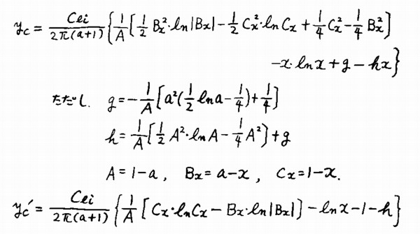 なお、x = a の時、コンピュータを用いると ln│Bx│の項が無限小となって計算不能となるが、M→0の時、M・ln M→0、M2・ln M→0となるのでこの項は0として扱う。x=0の時の ln Xの項、x =1の時の ln Cxの項も同様。ln は自然対数( log e )