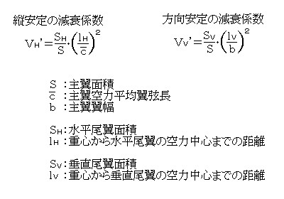動的安定を示す指標。尾翼に関係する減衰係数は、次式で表される。