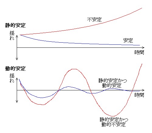 安定 (stability) [静的安定 (static stability)・動的安定 (dynamic stability)]
