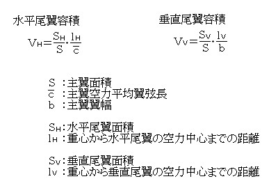 静的安定を示す指標。尾翼に関係する尾翼容積は、次式で表される。