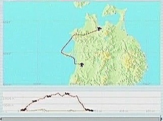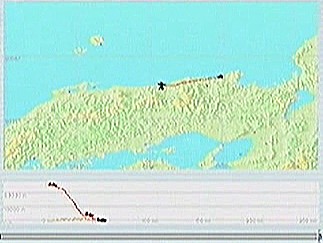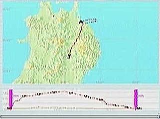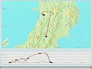 コースは宮古から盛岡へ抜け、岩手山の北側、松尾村上空を旋回して滝沢・盛岡の西側を通り、花巻空港手前でスポイラを効かせ過ぎて高度を失ったがパワーをかけて無事着陸。このシミュレーションソフトではスポイラが0%と100%の2ポジションしかないので、出きらないうちに引っ込めたり引っ込みきらないうちに出したりと出し入れを頻繁に行なうことで中間を実現している。そのため、一瞬の判断の遅れが高度ロスにつながるのだ。宮古にさしかかったところで仙台に降りようか迷ったが、次の予定地八戸まで遠くなってしまうので欲張らないことにした。八戸の後は下北・青森を経由して、日本海沿いを南下しようと思っている。