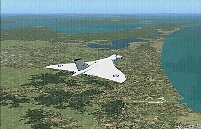 8日、ジョイスティックを新調した。まだラダー調整が充分でなく離着陸滑走に難はあったが、フライトを実行することにした。新しいスティックが届くまで今回使用予定のバルカンを、古いスティック又はキーボード操作で何度も訓練を重ねた。民間機だと巡航時のスロットルはフルパワーの75%くらいなのだが、軍用機はパワーがあり過ぎて75%ではあっという間にオーバースピードになってしまう。特にバルカンの場合は他の爆撃機と比べても高い高度(2万m)を音速近くで飛ぶようにできているので、低空ではパワーがあり過ぎて限界速度を超えて音速付近までいってしまい、舵面が振動を起こしてしまうらしい。舵がパタパタするのを見て最初はソフトがイカれてるのかと思ったが、そういう設定になっているようだ。(FS2004用の機体とうたっていても、インストールしてみて素直に動くのは1/4くらいで、コンピュータがフリーズしてしまうものも多い。)