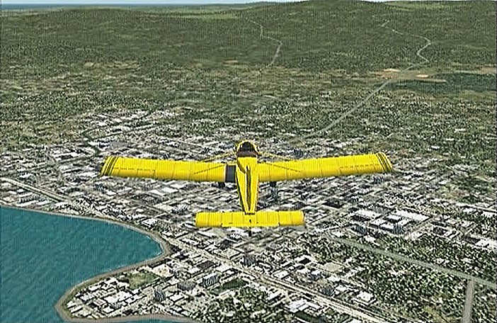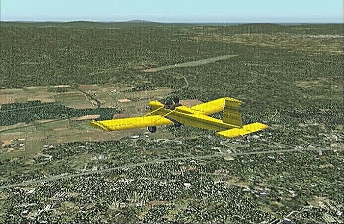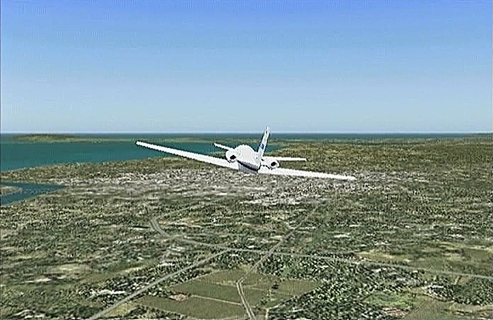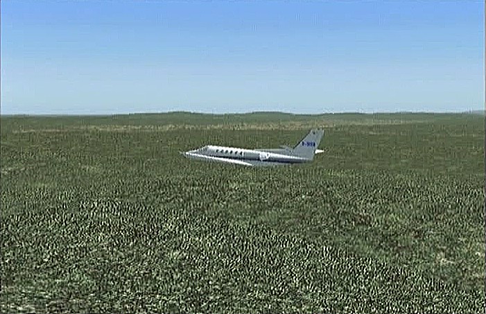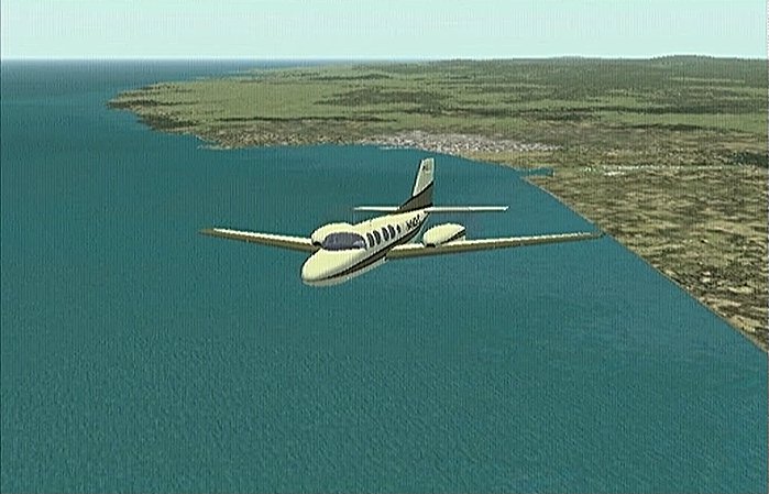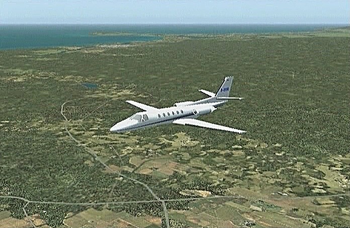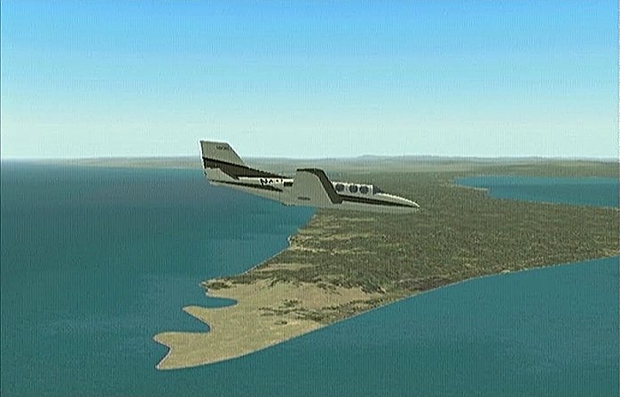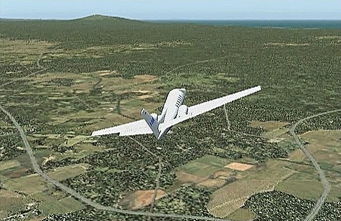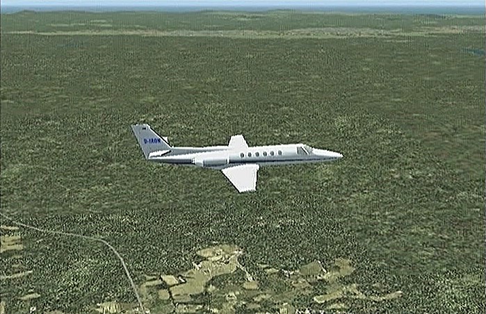 前回のフライトで、30分の制限時間では自分の住んでいた太平山の麓や毎年祭りに通う角館をまわることができなかった。今回は秋田市上空から馬蹄形をした太平山系北側の馬場目(ばばめ)岳の稜線沿いに上昇して田沢湖をまわり、角館を通ってまっすぐ山形空港まで飛ぶ。本当は角館の河川敷(ULPの発着場になっている)に降りたかったのだが、紫電改で飛んでみたら30分で着けるものの河川敷はシミュレーション上では畑になっていて着陸で脚を壊してしまい、角館着陸はあきらめて山形空港まで飛べるようジェットを選定したのだった。セスナ・サイテーションは最近のジェット旅客機では極めて珍しい直線翼の機体である。他ではソ連の作ったYak−40が有名だが、セスナは徹底したコストダウンを行なったため他のビジネスジェットに比べてかなり価格を抑えたと聞く。なおセスナはその後、主翼を後退翼にしたサイテーション�Xも出している。