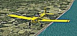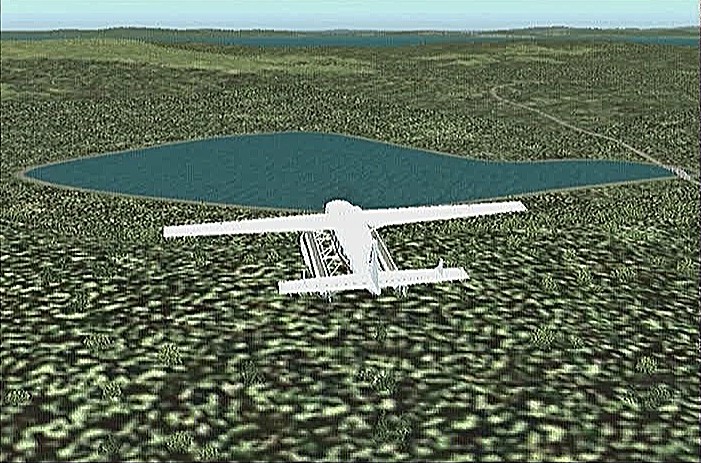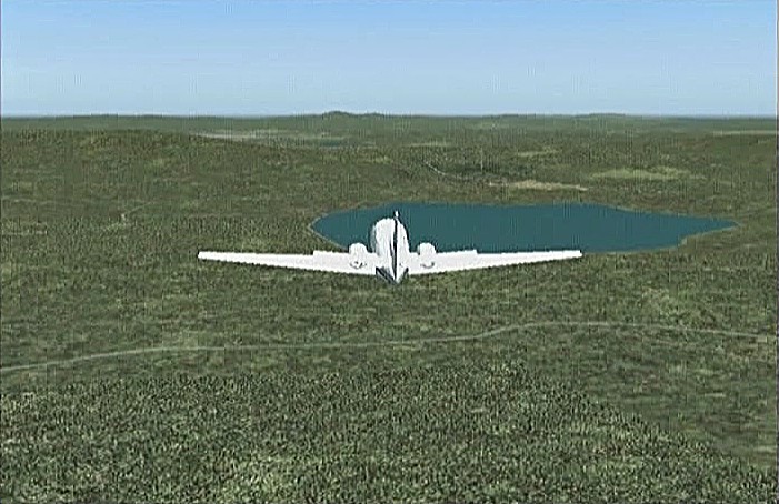 続いて次のフライトの機種選定のためのテスト飛行を行なった。次の目的地は、下北半島の大湊飛行場(600m)である。寒立馬(かんだちめ)のいる尻屋崎を経由すると直線で135kmあるので、30分で飛ぶとすると巡航速度は270km/h以上なければならない。インストールしてある機体でこの条件で探すと、ムーニー・ブラボー(巡航361km/h)とセスナC208B(同305km/h)、エンジェル44(同322km/h)の3機種しかなかった。この3機で大湊飛行場の離着陸テストを行なってみたが、ムーニーは離陸は600mだとギリギリ、上昇もようやく木の上をかすめたが着陸は400mくらいで止まれる。セスナは離陸は余裕だが、着陸は600mギリギリ。エンジェル44は離陸はムーニー同様ぎりぎりOKだが、着陸はブレーキの効きも良く300m以内で止まれることがわかった。ターボプロップはスロットル・レスポンスが遅く、まだ慣れない事もあってセスナはあきらめ、ムーニーより着陸距離の短いエンジェル44を使うことにした。着陸300m以内というのは、実際には滑走路端では50ft(15m)の高さをみるので50ft高から停止までの距離という事になる。一般に航空機のデータを扱う場合、離着陸滑走距離とは、この50ftから(離陸の場合は50ftまで)の距離を言う。