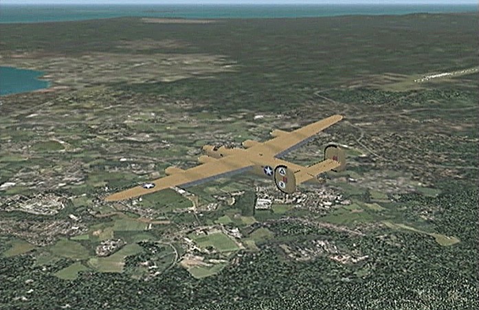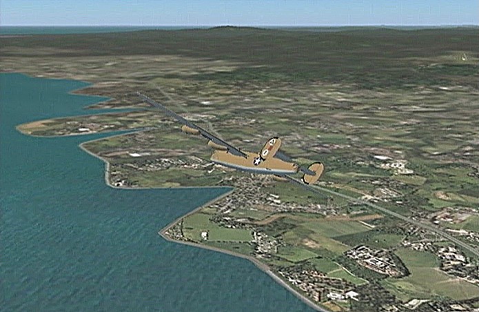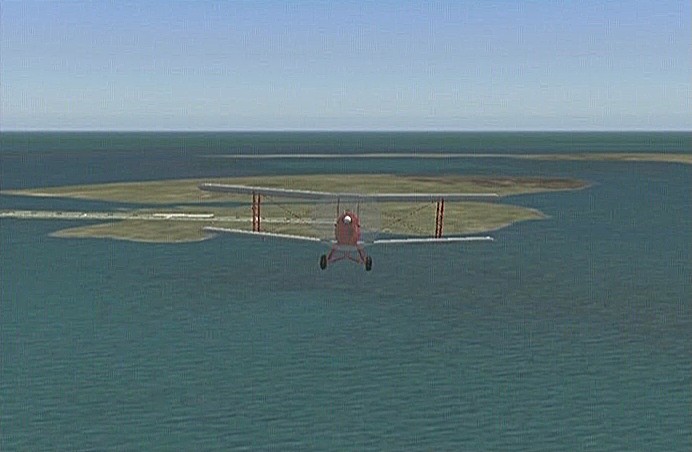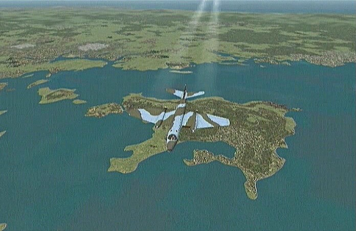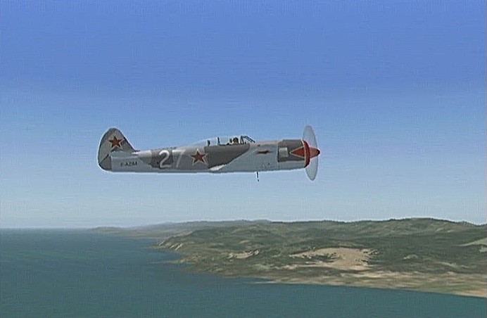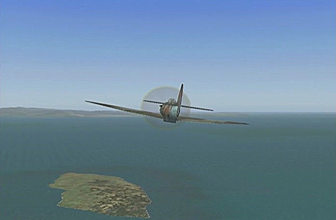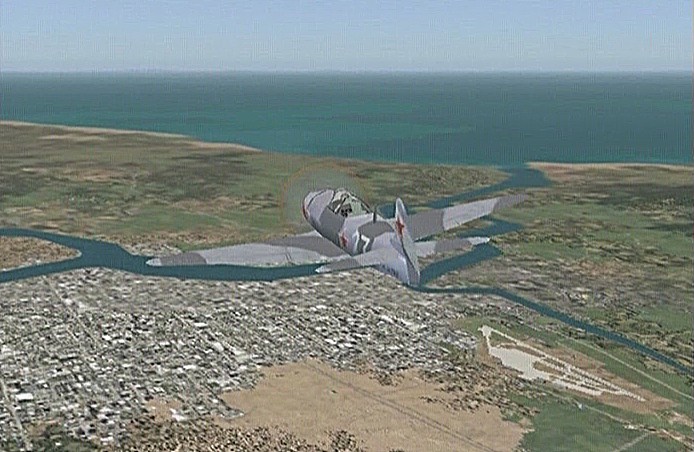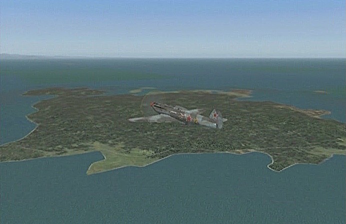 ここから先は30分フライトにしては比較的距離があるので、プロペラ機でも速度の出る機体を選定。Yak−9、11といった軍用機が手に入ったので、さっそく使うことにした。与那国島近くまで高度を保っておいて、戦闘機なんだからと荒っぽく降下してみたが、どうせなら思い切ってアクロに挑戦するんだったなあ。