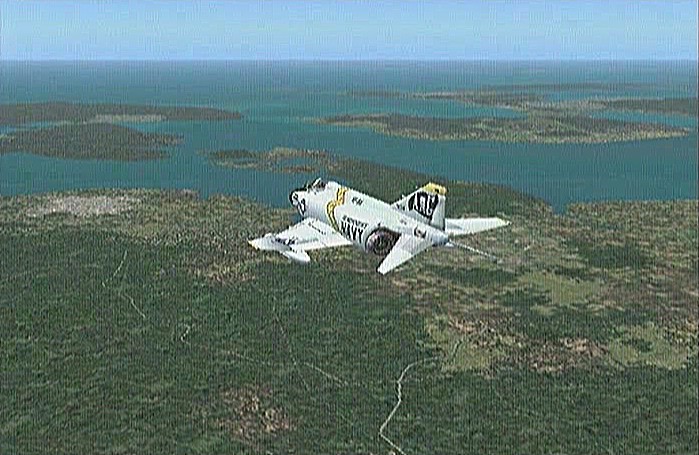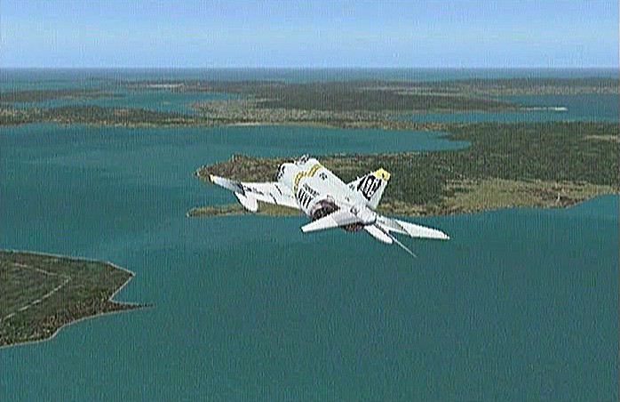機体はF−4ファントム。マッハ2が出るはずなのだが、FS2004のアフターバーナの点火方法が分からない。キー割り当て表にはあるのだが、点火できないようだ。ノーマルでマッハ1前後出るようだから、まあいいか。天草上空まで一直線に飛んで、長崎大村空港へ向かう。