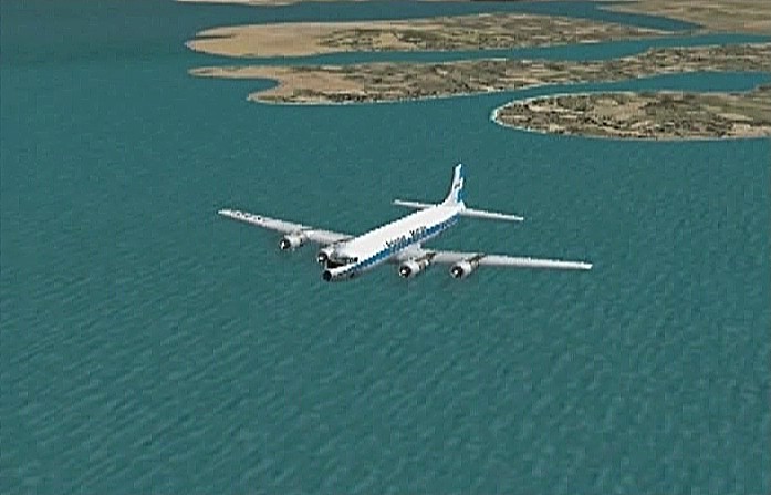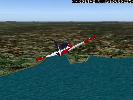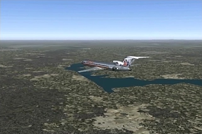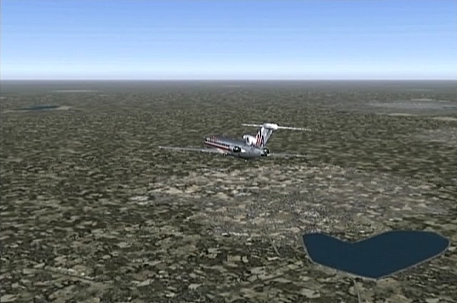 機体はボーイング727を使った。727は−100が好きなのだが入手できてないので−200になった。707やDC−8も使いたいが、一世代前の機体は離陸滑走距離が長く、3000m以上ないと離陸は難しい。練習では離着陸で何度か尾部をぶつけてしまった。機首を上げ過ぎないよう、注意が必要。大体2万数千フィートまで上がると飛行機雲が出るので、その高さを目安に飛行した。