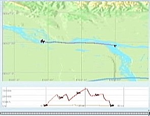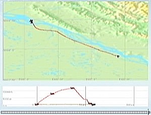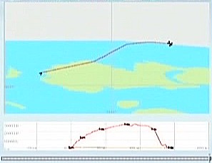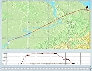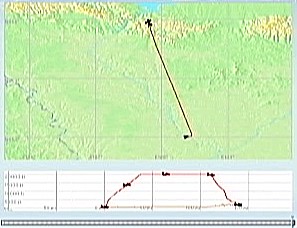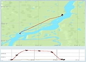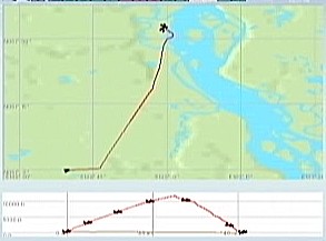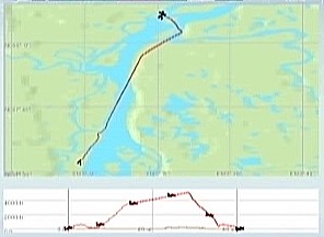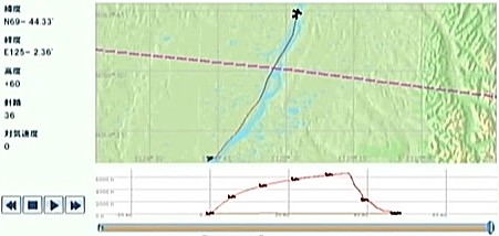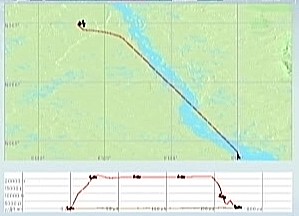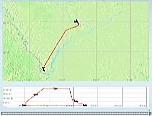 また、シーナリーの切れ目を横切ったために、切れ目までの飛行記録が消えてしまっている。そのため経路図でも途中からになっているが、ターミナルマークの所が実際の出発点。