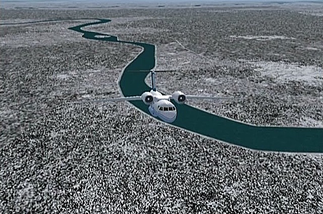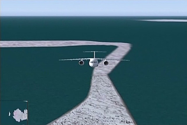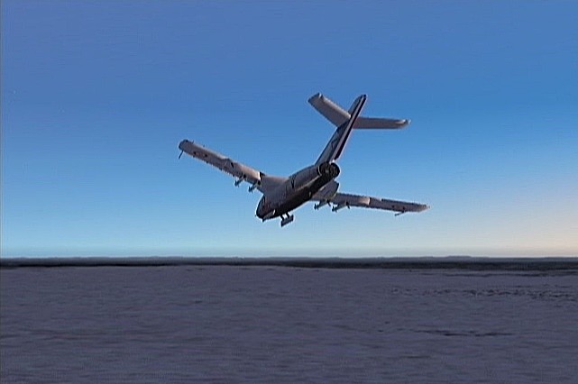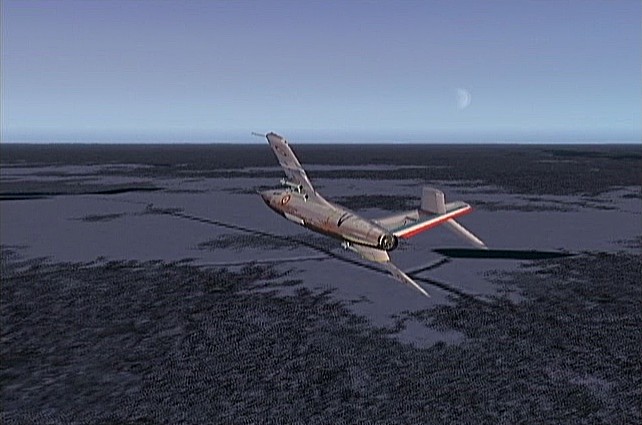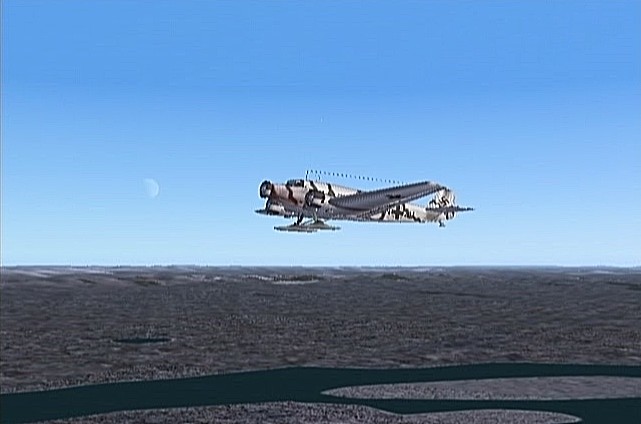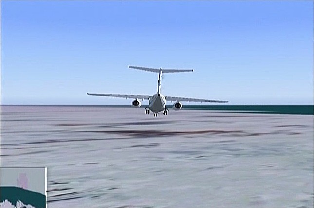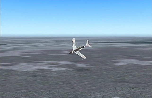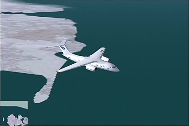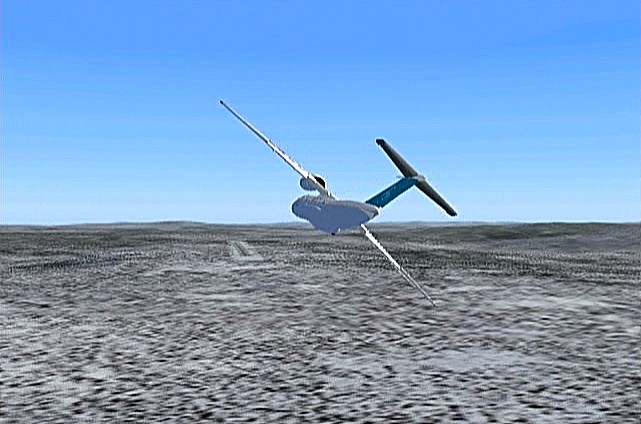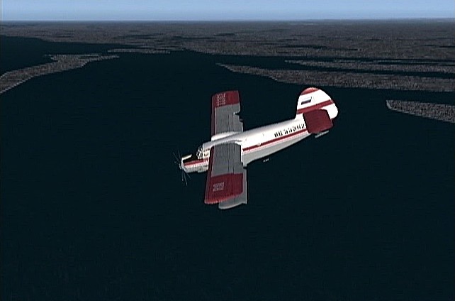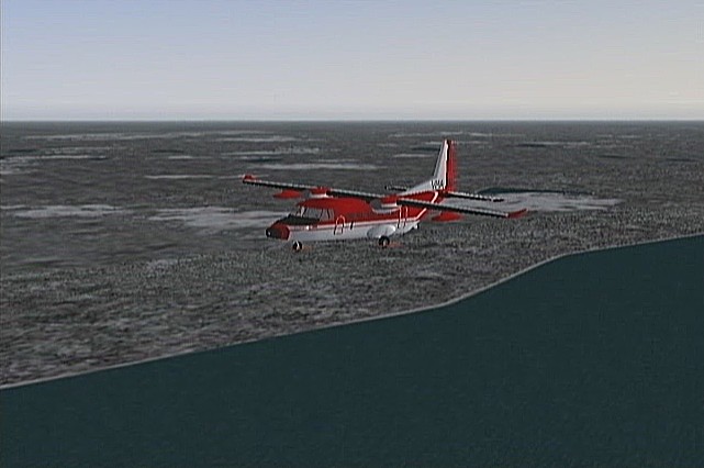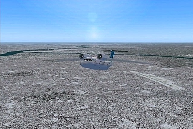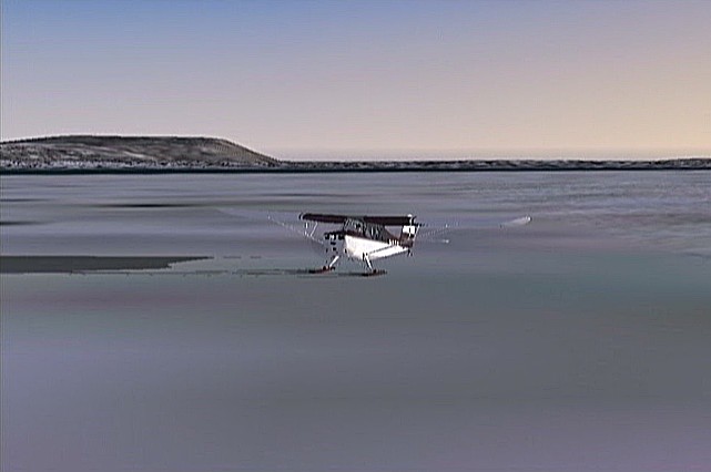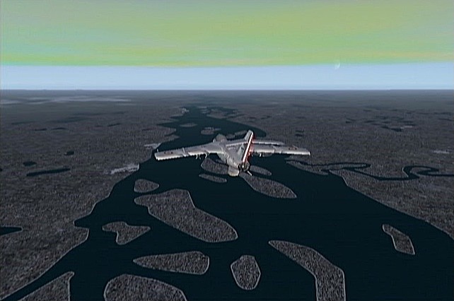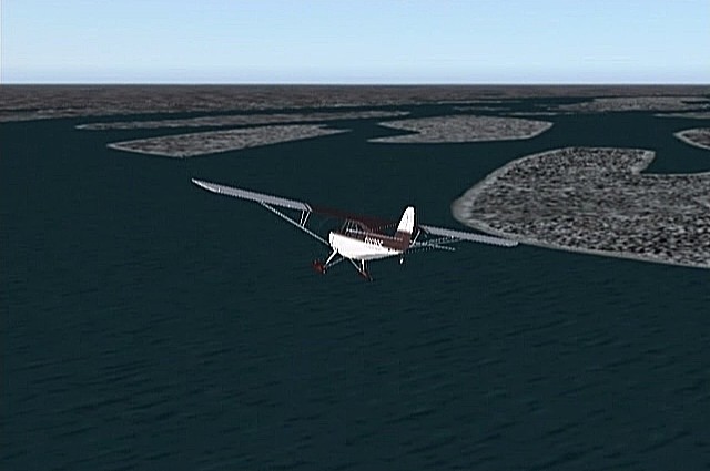 前日の予備フライトで、北極海に浮かぶコチェリヌイ島の西端にある砂洲まで25分程度で着く事を確認。ところが降下を急いでスピードを出し過ぎ、エレベータ操作を誤ってアップ・ダウンしているうちに着陸地を見失い、見つけた時には真上まで来てしまっていた。のんびり降ろしていては時間オーバーになりそうだったので、逆インメルマンと急旋回でムリクリ進入コースに突入。タイムリミットぎりぎりで無事着陸させることができた。