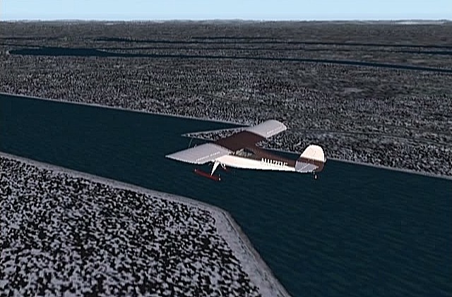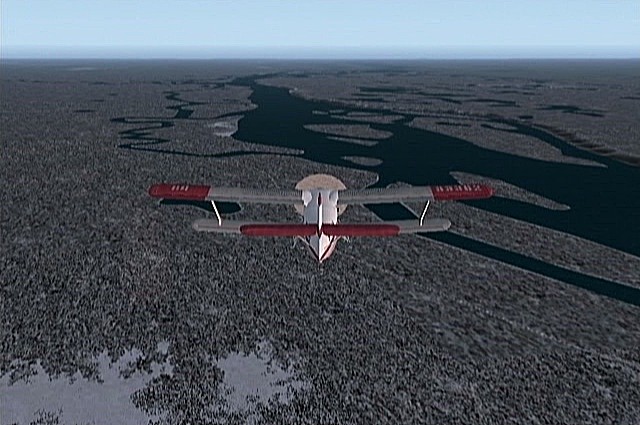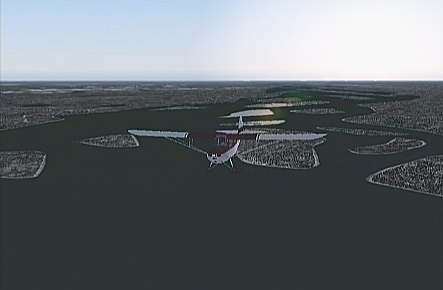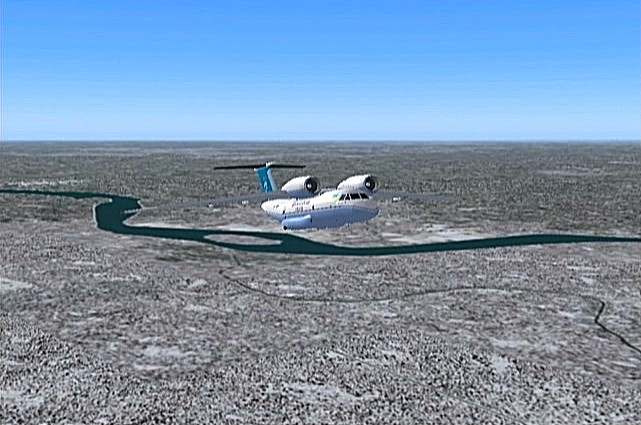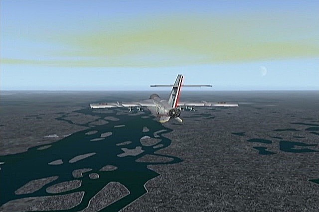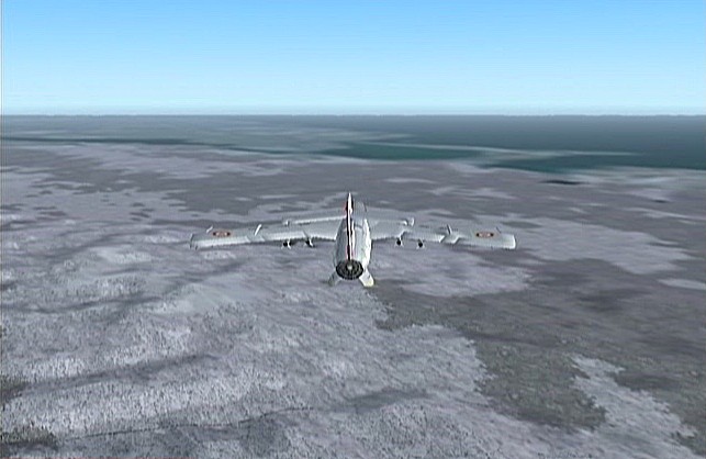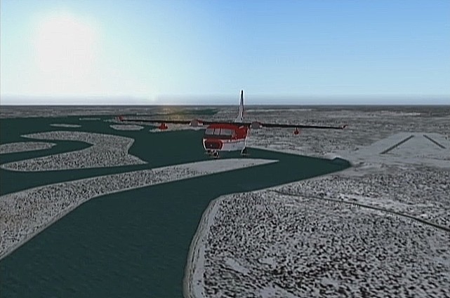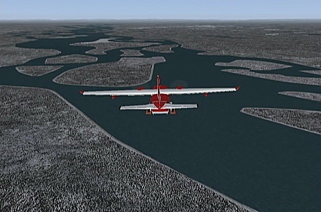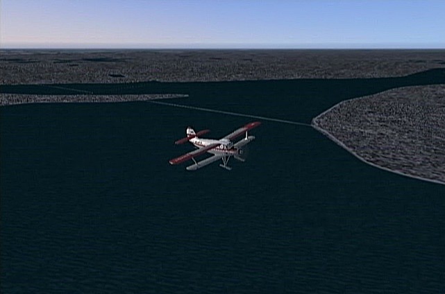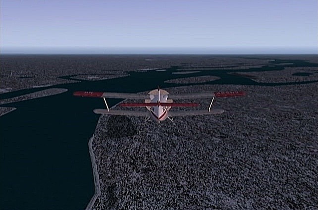 WindowsVistaとFSXの導入と、導入作業で誤って消してしまったWindows2000の再インストールに手間取りしばらくフライトできなかったが、ほぼ元通りにすることができたので久しぶりのフライト。思い切ってFSXを使ってみた。FSX用の高解像度シーナリー(FS Global 2008)を入れたが現在フライト中のエリアは高解像度領域に入っておらず、湖や河川の輪郭が角張っていてかえってFS2004の方が綺麗に見えることが分かった。FSXの使用は、アラスカに入ってからにしよう。