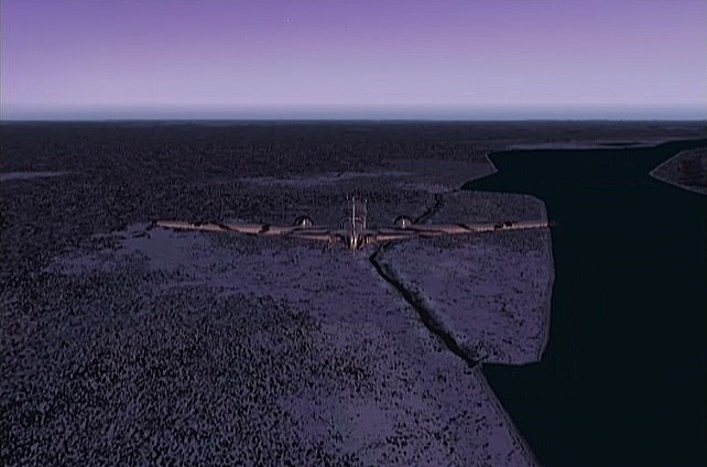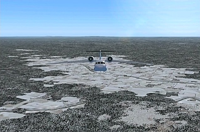 しばらくフライトできなかったので、目的地チクシはすっかり明るくなってしまった。そこで、以前使用した Baroudeur で一気にチクシまで飛ぶことにした。距離をよく調べずに飛び立ってしまったが「30分で届かなければその時はその時」とハラをくくって飛び続けたら、何度か着陸の練習をした見覚えある風景が見えてきて、手元の世界地図と照らし合わせてチクシと判断。わりとたやすく滑走路も見つけられて、時間に余裕もあったので大きく旋回して進入。久しぶりのフライトをぶっつけ本番にしてはまずまずの着陸。なお、シミュレータのフライトビデオを撮ってみたが再生がスムーズでなく、フライトビデオからの録画は諦めた。