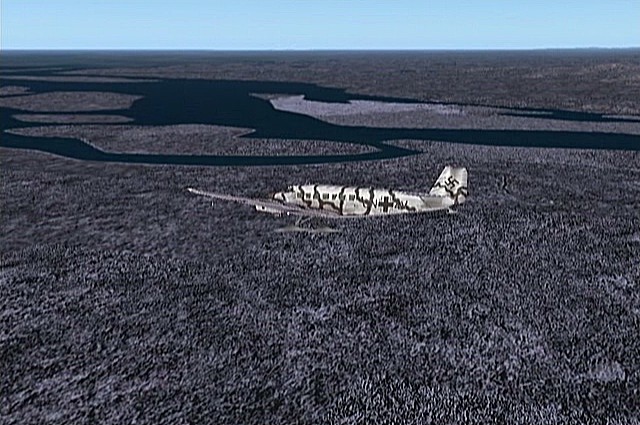 日時を今日に設定したら、まわりは雪景色になっていた。先を急ごう。今日はチュリマンまで行く。使用機は、草地の発着を考えてソ連機を選んだ。チュリマンまで同一機を使用する。目標物のあまりない大陸の飛行では特に方角を正確に保つ必要があり、今回からオートパイロットを多用することにした。計器より景色と機体を見たいので高度維持もむずかしく、方角と高度の維持を頼ることにする。