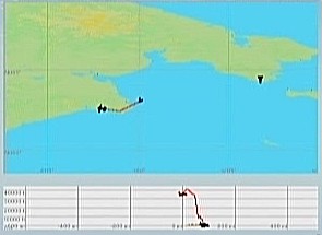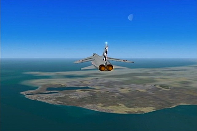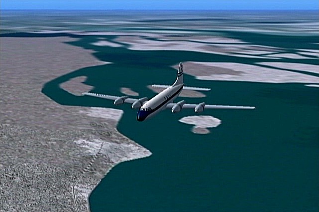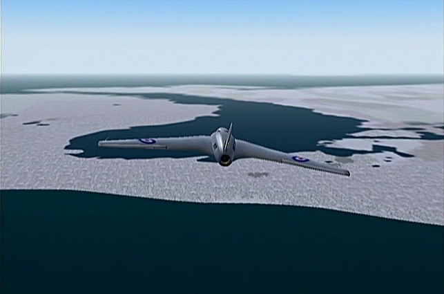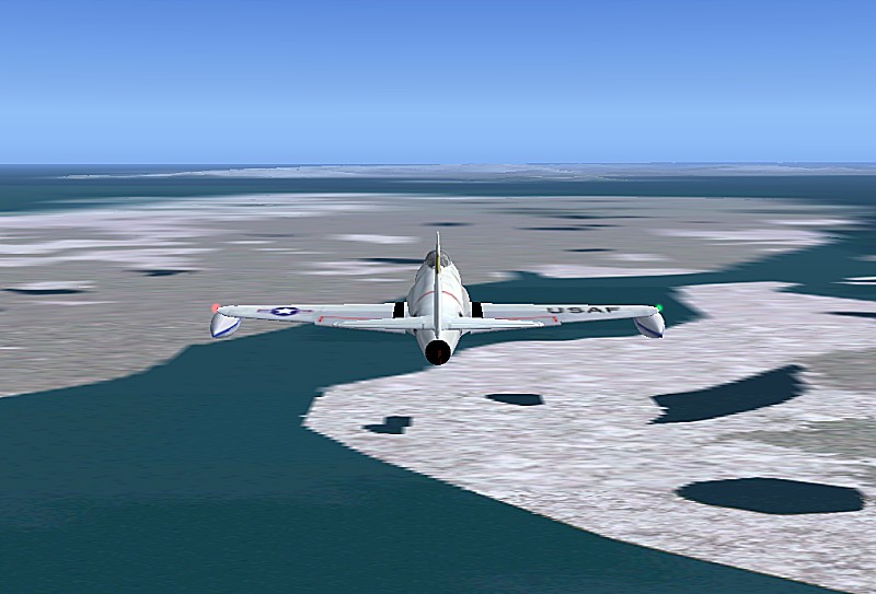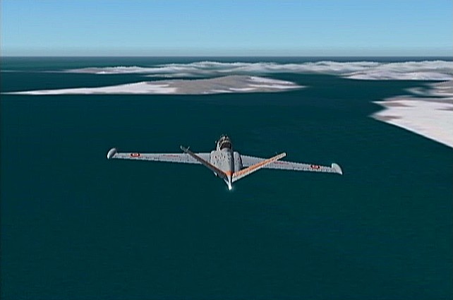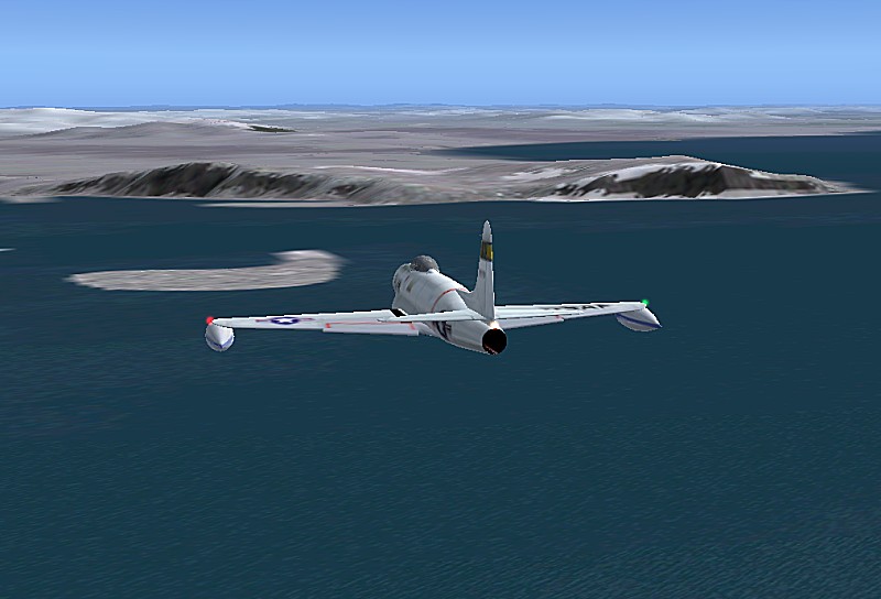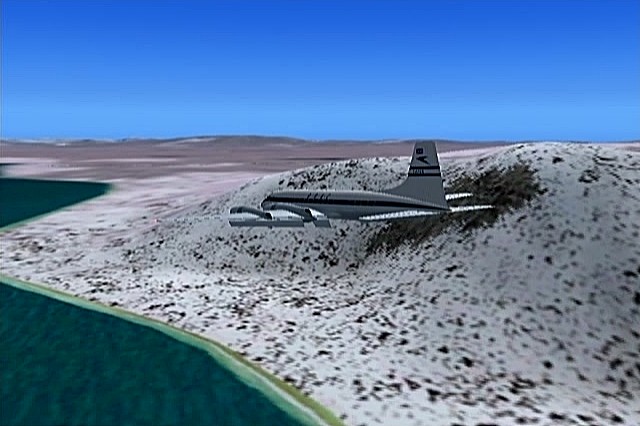 Brian Sturton Grizzly とは聞いたことのない機体だ。おそらく架空機だろう。アッツ島までは距離があったので、架空機でもマッハ2.5は使いたかった。事前フライトではベーリング島から Eareckson AS まで30分で収まっていた。今回はその先のメードヌイ島からのフライトだったので、かなり余裕があった。アッツ島は日本人にとっても悲しい歴史のある地である。降りてみたかったが、どうも先を急ぎたい気持ちが強くて飛び越えてしまった。