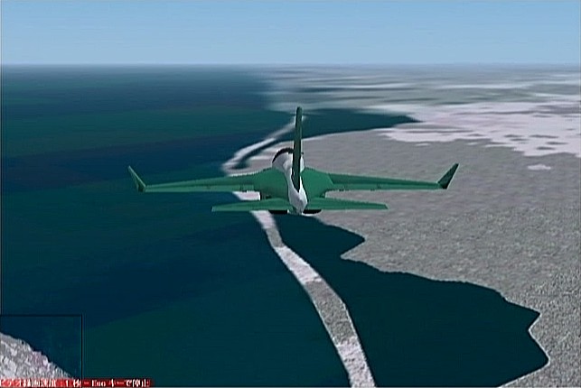フライト終了後、Lockheed Martin X-35 はマッハ4.7を出すというので、どこまで飛べるか試験飛行をしてみた。高度5〜7万フィートをフルパワーで飛ぶ。眼下の景色がまるで1万フィートで飛んでいるのではないかと思うくらい、あっという間に流れて行く。30分でアラスカ本土の先端近くまで行ってしまった。こんなに速い乗り物があったとは、ただただ驚いた。しかもこの機体、垂直離着陸ができる。ホバリングは難しいようだが、何とも贅沢なヤツだ。次のフライトで使うかどうか、ま、しばらく休んでじっくり考えよう。