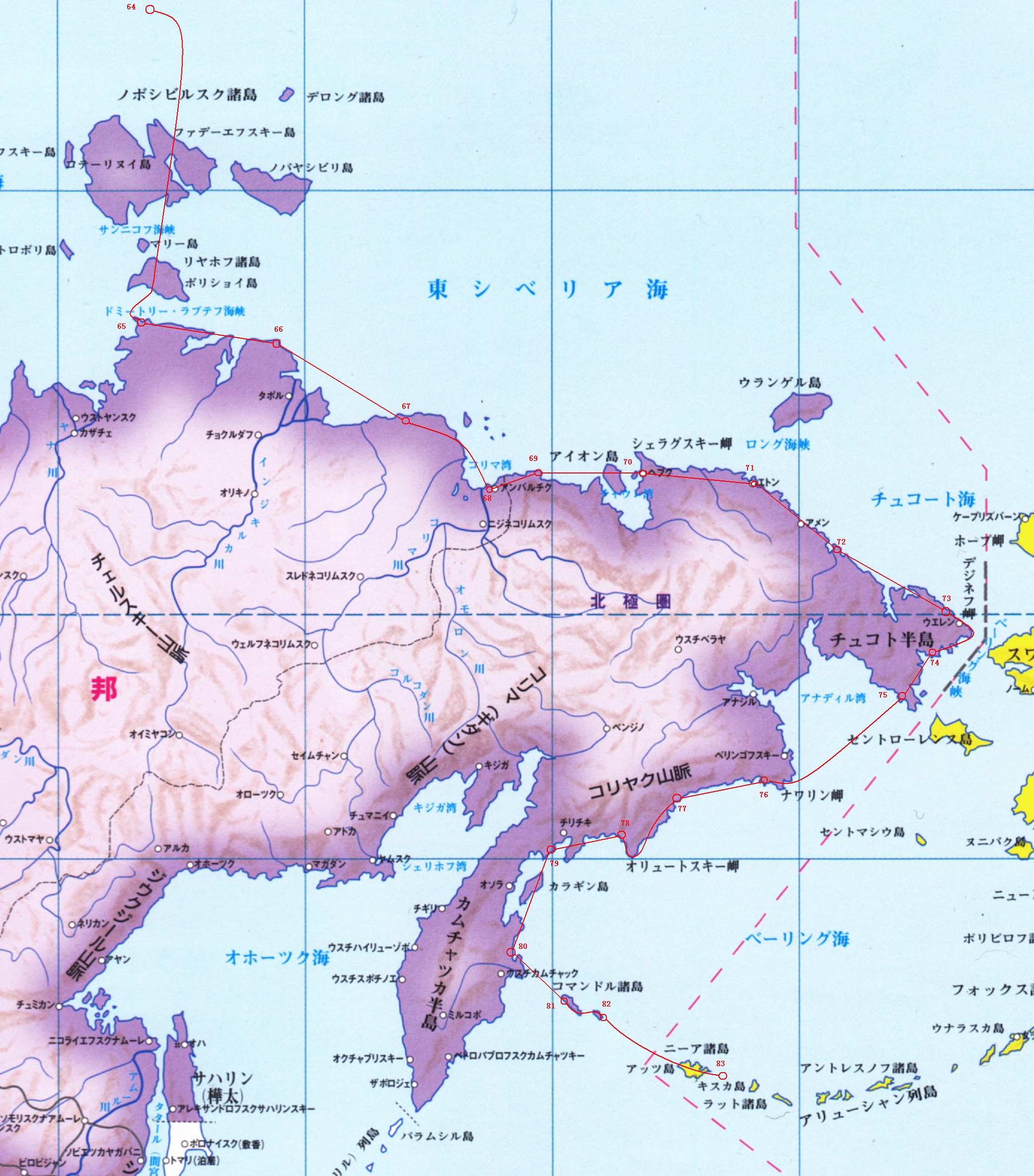 ここのところ気のめいる事が続いて、気晴らしのための、時に酒も入れながらの禁断フライトが多くなっている。このようなフライトは、どうも気が進まない。しばらく休もうか。実のところ、カムチャツカ半島を離れたのでアッツ島に着いたと思い込んでいた。地図を調べたらまだ国境を越えていない、まだシベリアの一部に居るらしい。アッツ島まであと2フライト必要である。一段落までもう一息。