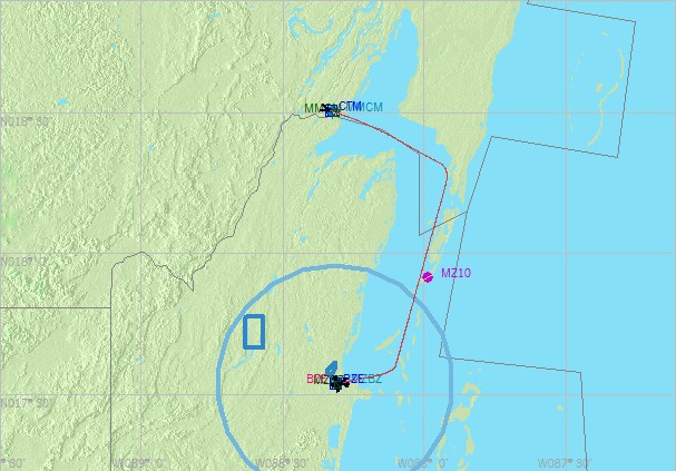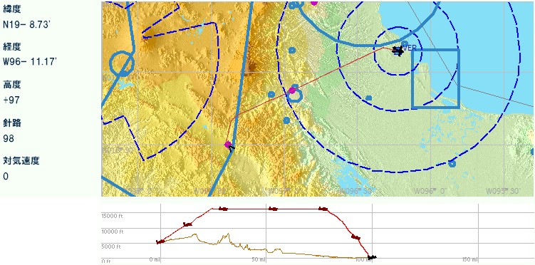 ところで何とこの Philip S W Goldson という空港、シーナリー設定で自動生成オブジェクトをONにすると滑走路の中に木が生えてしまう。多分シミュレータの空港としての登録にミスがあるのだろう。やむを得ずOFFに設定して運用した。
