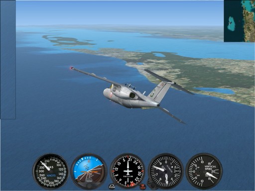 アメリカを出たのだからアメリカ以外の機体を使おう。以前からインストールしてあったブレダ・ザパタBZ−308だが、どこの機体かと思ったらイタリアだそうだ。2,500馬力のレシプロエンジンだから、戦後作られた機体だ。日本にいると、レシプロ機に関してはアメリカ、イギリス、ドイツの機体はよく語られているが、フランスやイタリアの機体についての情報がなかなか入りにくい。二流三流といっても実際に飛行機を作り上げたということはその国の工業力の証明なのだから、情報として公平に扱われるべきじゃないかな。この機体にしろポテ630にしろ、フライトシムをやっていて初めて知った機体。まだまだ知らない機体がたくさんあるに違いない。
