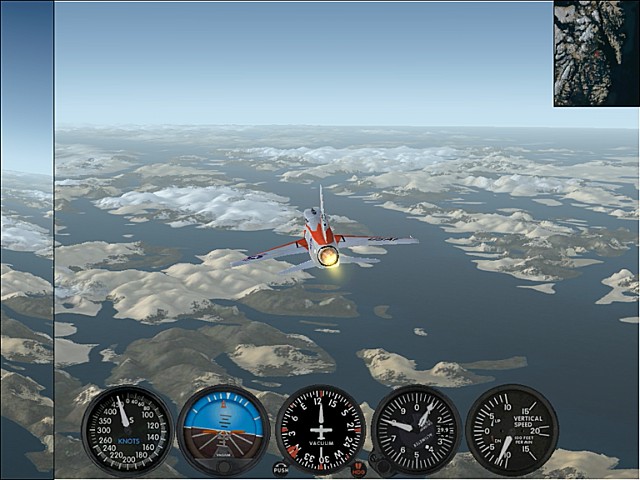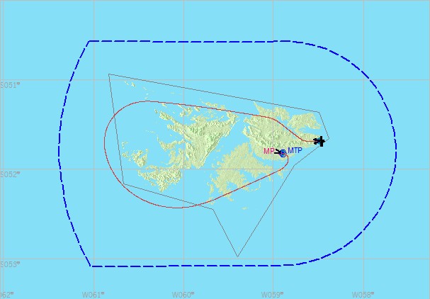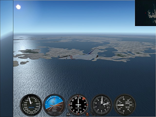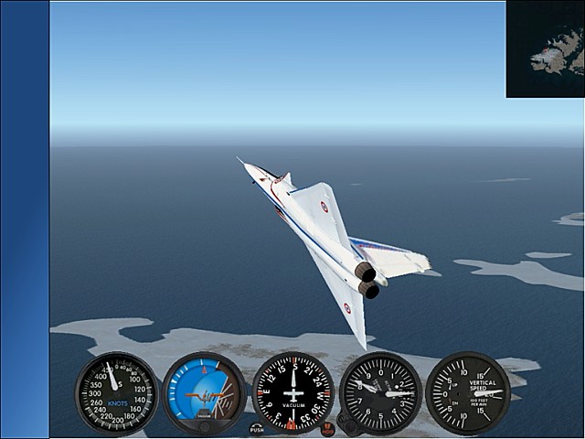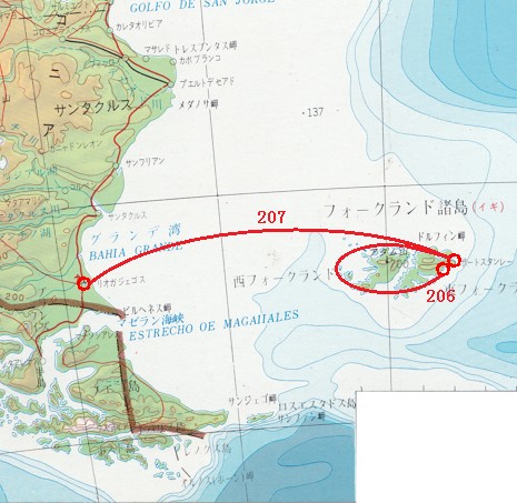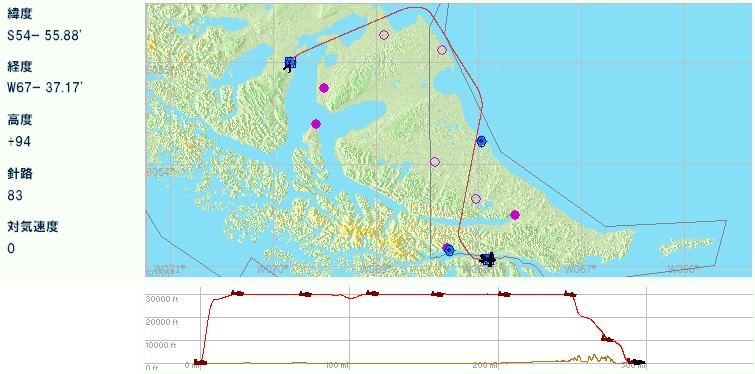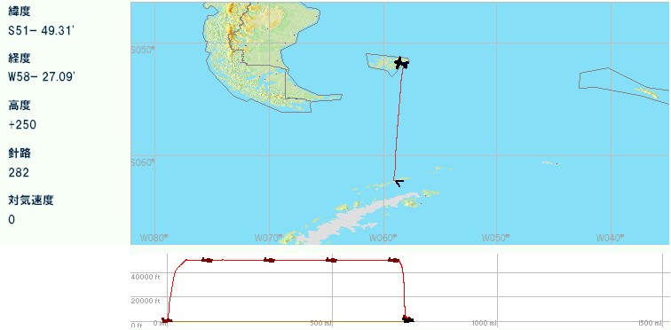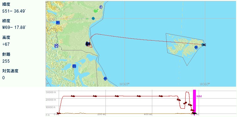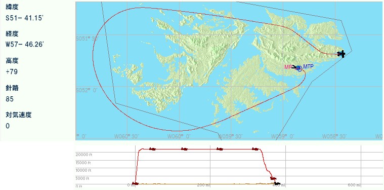 フォークランドに西島と東島があるとは聞いていた。人口のほとんどが東島に集中しているとも聞いていた。しかし細かい島がたくさんあることは、今回のフライトで初めて知った。せっかくフォークランドに来たのだからと、諸島を一周することにした。当初はレシプロ高速機で回るつもりでいたが、練習フライトに出て5分も経たないうちに到底回りきれないことを悟り、最終的にマッハ2クラスの機体を使うことになった。世界の広さを改めて感じた。