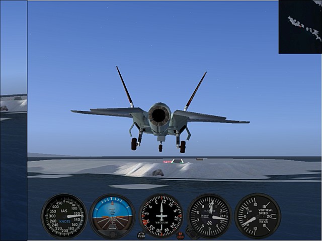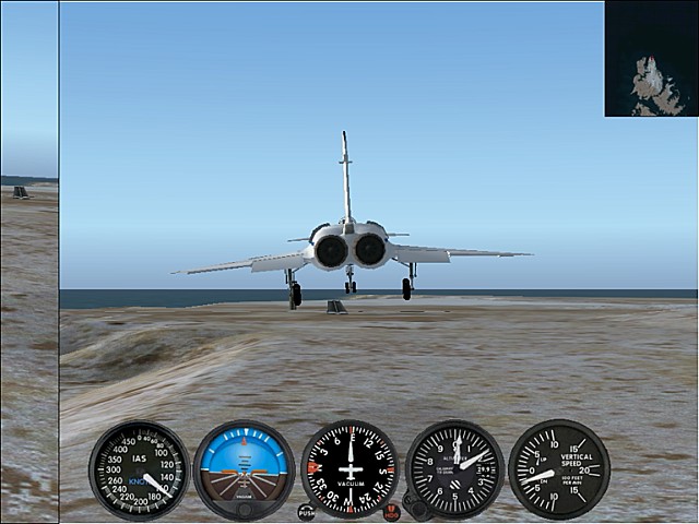 ミラージュⅢでもそうだったように、デルタ翼機は進入時、機首を上げて低い速度を維持するのが難しい。加えて滑走路が短いのでより低速で進入しなければならず、練習でも何度かオーバーランして海に突っ込んでいて不安だったが、何とか滑走路内に止まることができてホっとした。飛ぶ以上は、確実に、安全に、正確に、降ろす。もっとこの事にこだわりたい。まだまだ未熟。