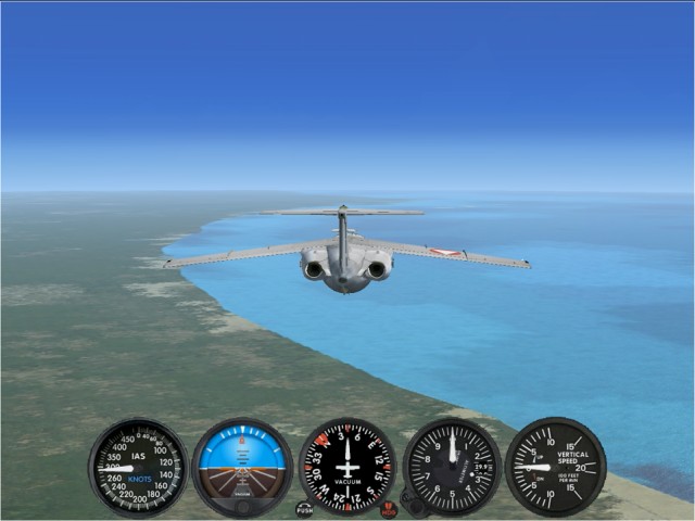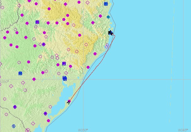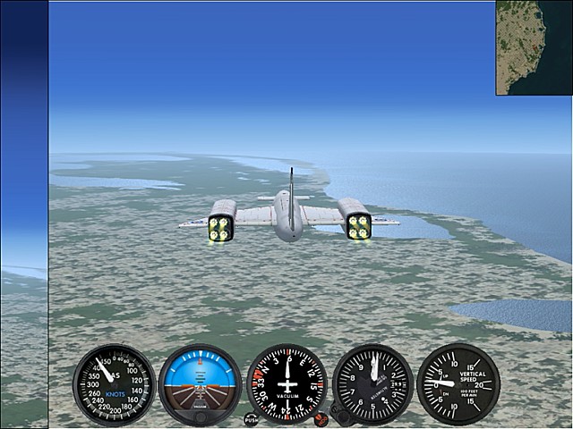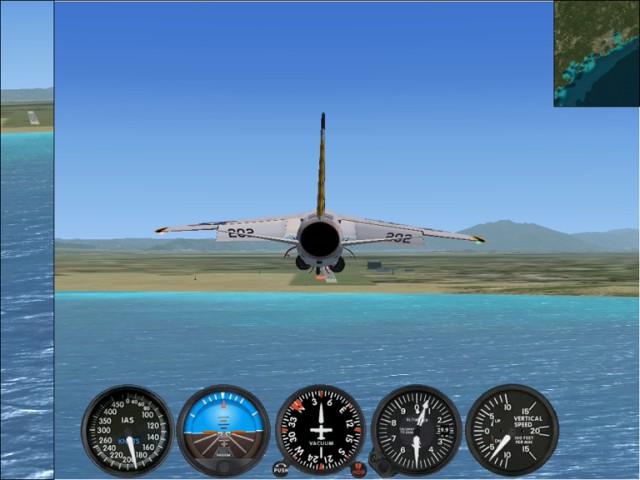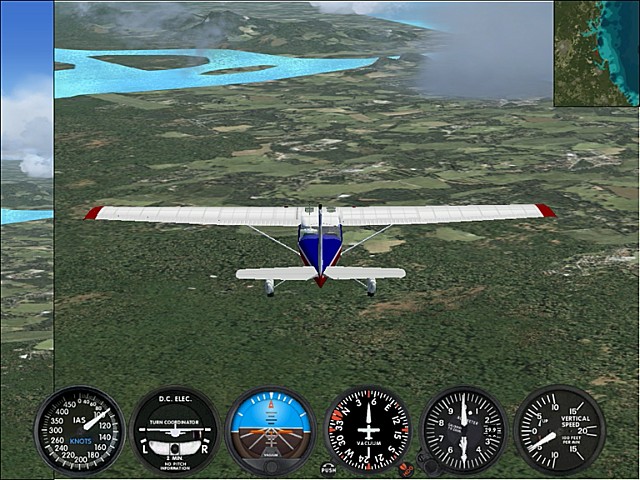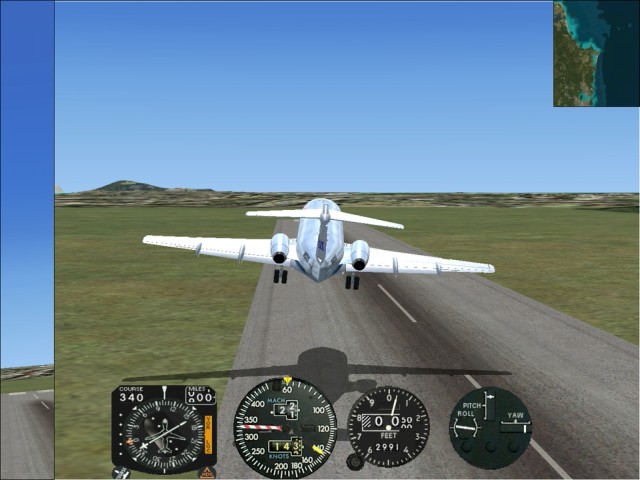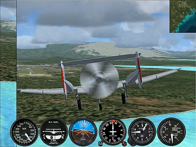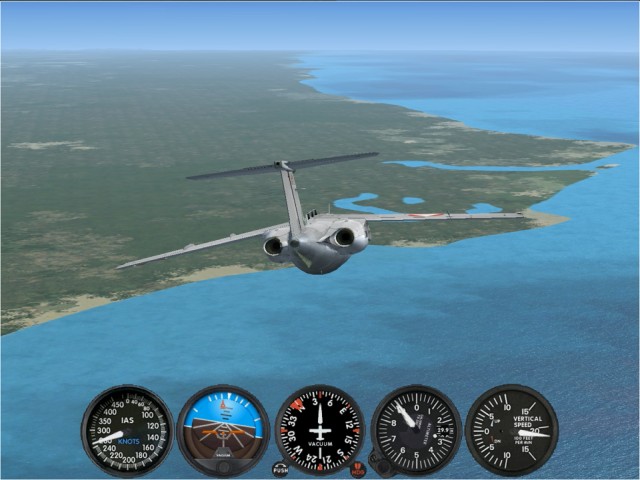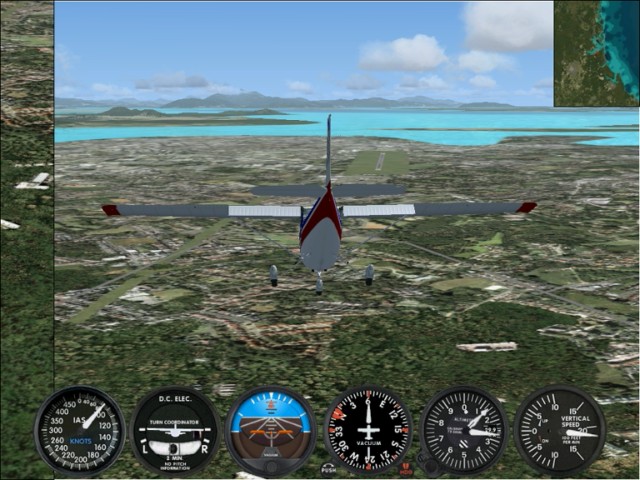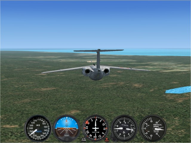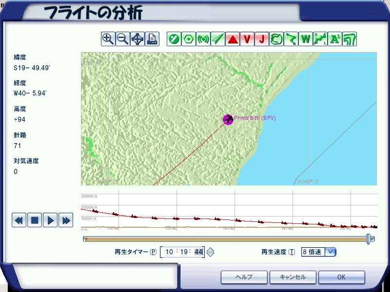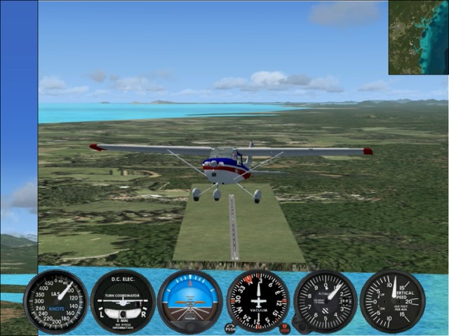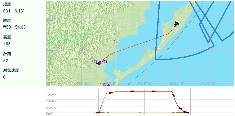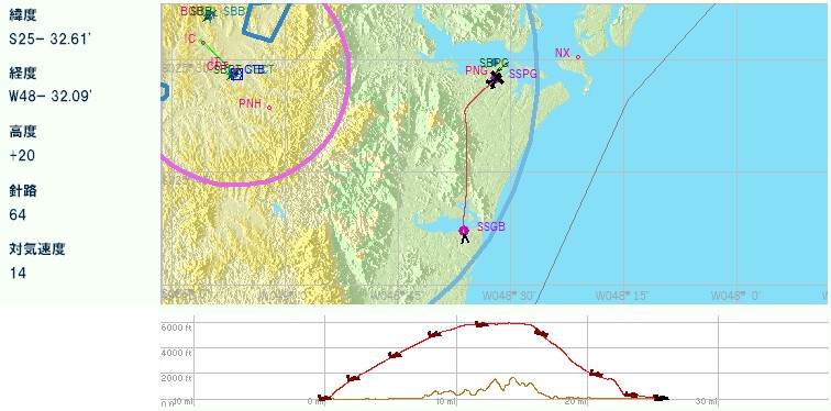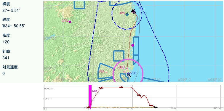 ようやくブラジル入り。近くに大きい空港がなかったので、高速機を使って距離をかせいだ。フライトが終わると大抵は次のフライトの機種を決めて1度はテストで次の空港まで飛ばすのだが、そのせいもあって数日後練習せずに本番に入ってしまう。この日も練習時間がもったいなくて、ぶっつけ本番とあいなった。そのため、到着空港をうろ覚えで「たしかこの辺だったよなぁ」。やはり着陸で練習不足が出てしまった。