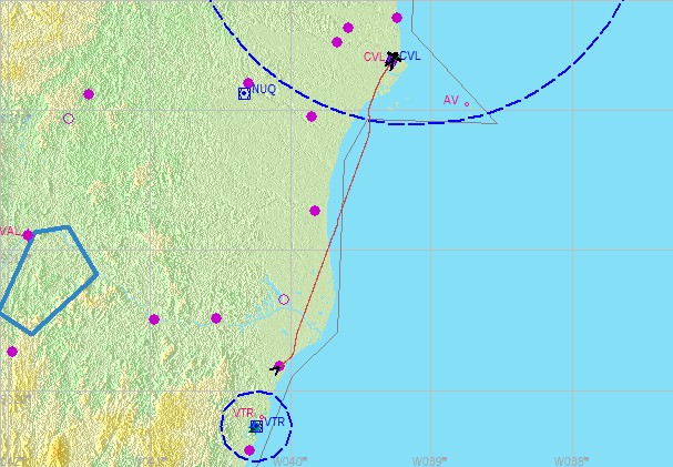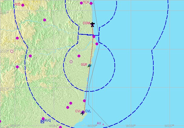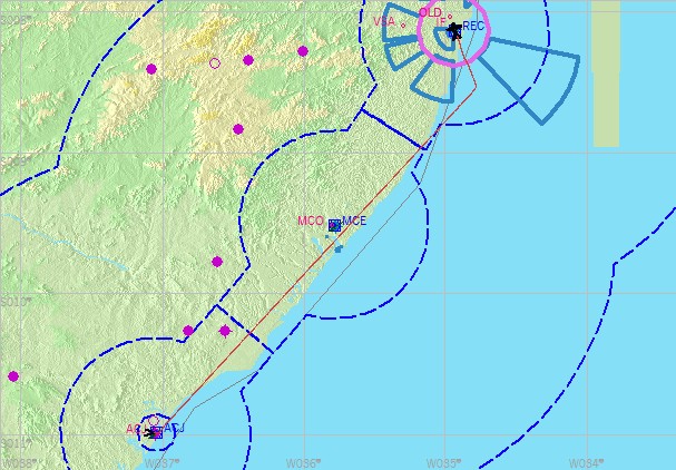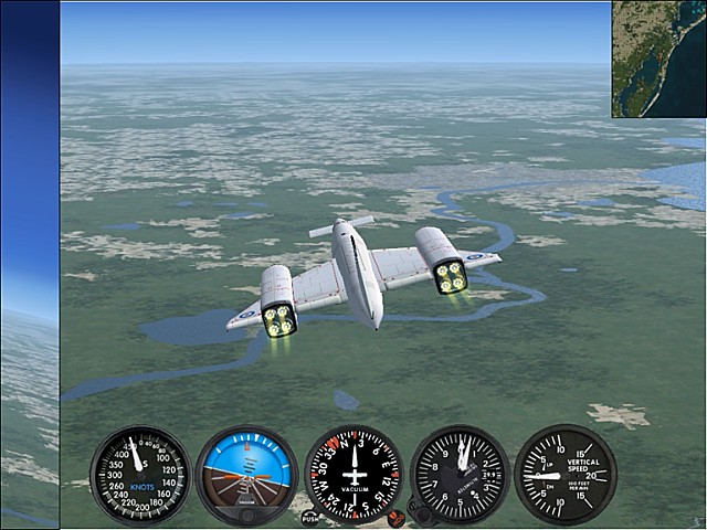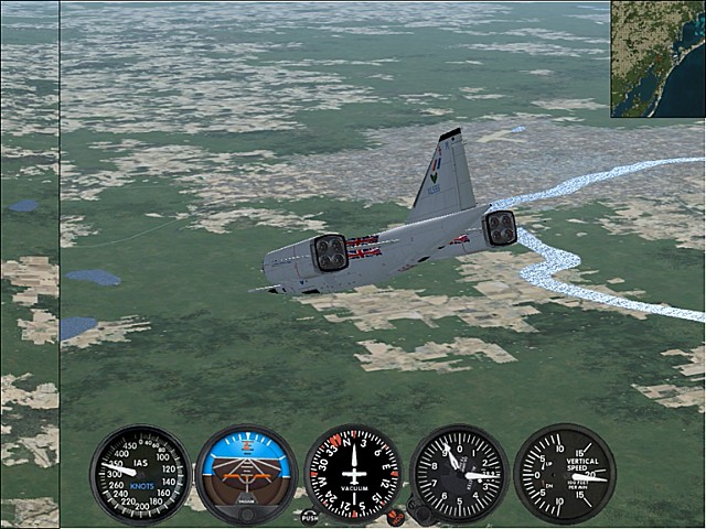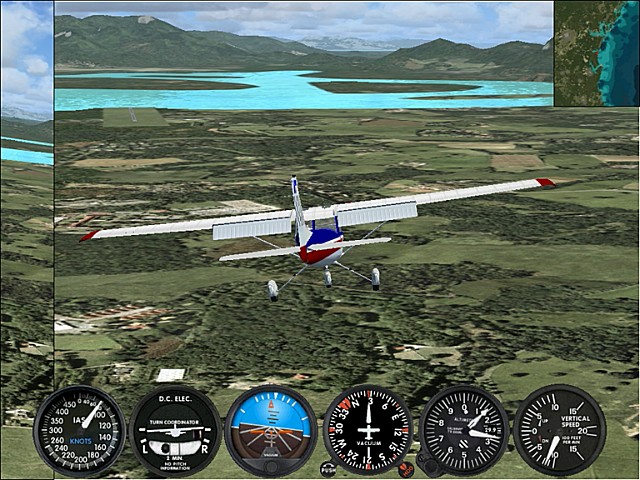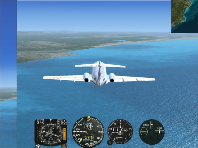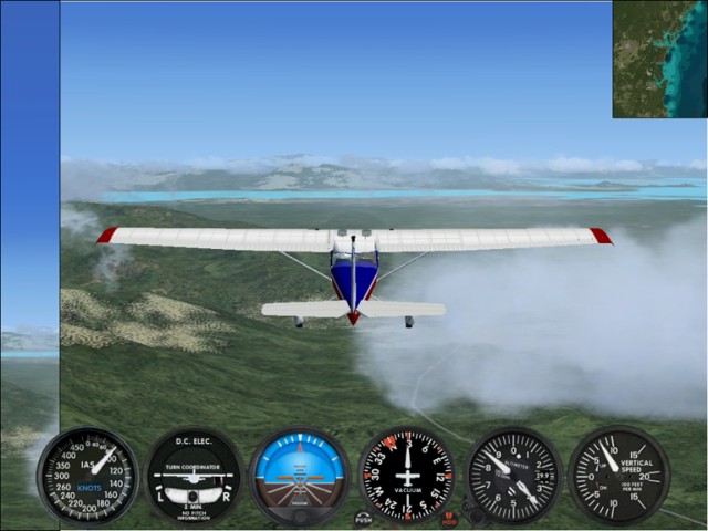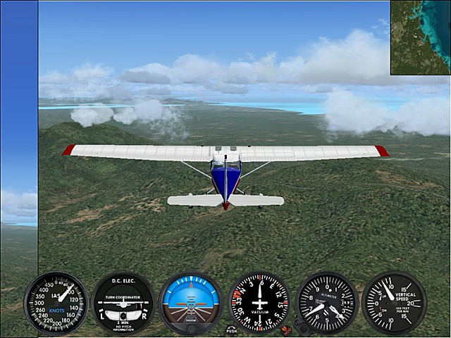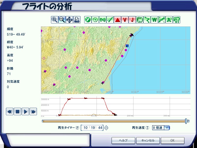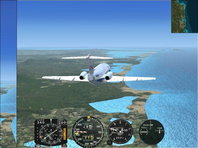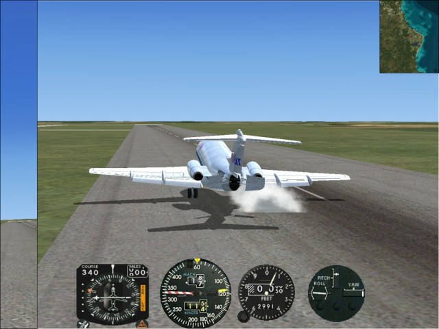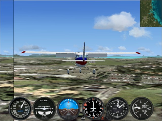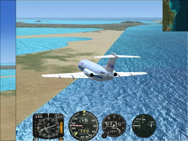 ようやくブラジル入り。近くに大きい空港がなかったので、高速機を使って距離をかせいだ。フライトが終わると大抵は次のフライトの機種を決めて1度はテストで次の空港まで飛ばすのだが、そのせいもあって数日後練習せずに本番に入ってしまう。この日も練習時間がもったいなくて、ぶっつけ本番とあいなった。そのため、到着空港をうろ覚えで「たしかこの辺だったよなぁ」。やはり着陸で練習不足が出てしまった。