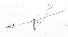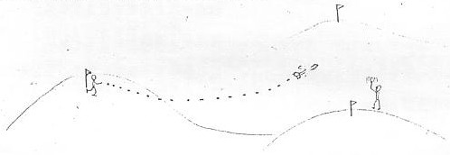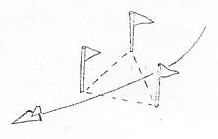 ポールを3本立てて、この三角形のどこを通っても「通過」と認める。 利点=行き過ぎに対しては、2ポール方式よりも楽になる。 欠点=ポールをたくさん用意しなければならない。 |