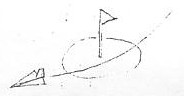 中間点やゴールでは、ポイントを中心に半径1mの円をかき、この円の上空を通った時、「通過」と認める。 利点=行き過ぎてしまっても、大きく戻る必要はない。 欠点=「通過」の判定がしにくい。 |