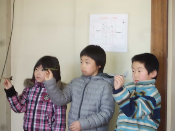 なお、低学年の子には「切り紙」飛行機ではなく「折り紙」飛行機を作らせる案もあったが、主催者側の希望もあって全員「切り紙」飛行機(カッター使用)に挑戦することになった。全員と言っても過疎化のためこの地区の子どもの数は少なく、小3が2名、小1、5、6が各1名である。教室の時間は2時間。各家庭の事情もあって、途中参加2名、途中退出2名。大人は主催者・サポーター・講師の私の3人。