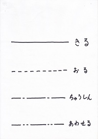 ・低学年にはカッターは難しく、準備していたハサミを与えてみたところ曲線も比較的きれいに切れていたので、ハサミできれるところはハサミを使わせ、細かいところにカッターを使わせた。