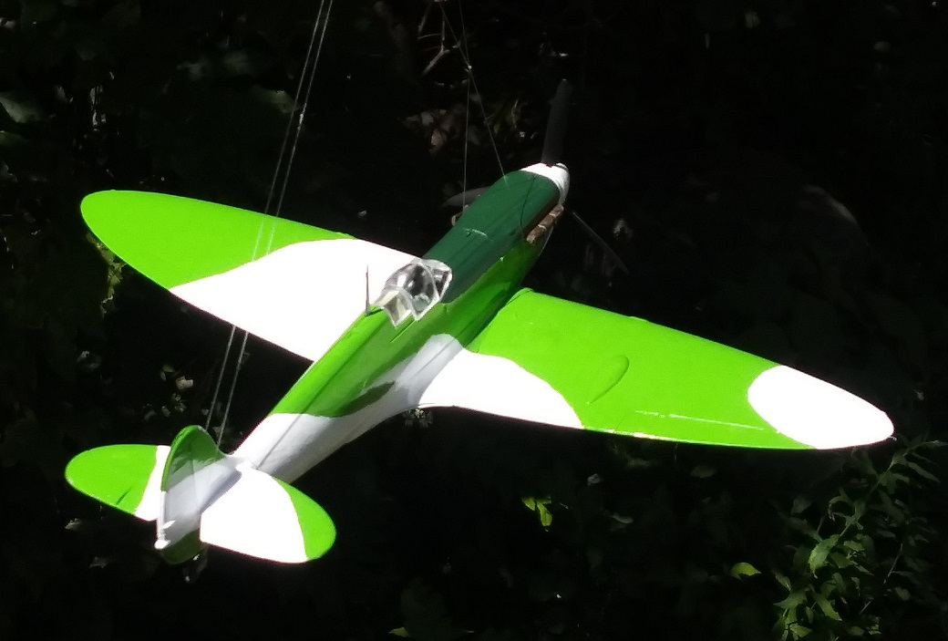 軍用機的迷彩パターンながら、スピットの国イギリスらしく、芝のグリーンを鮮やかに引き立ててみた。
