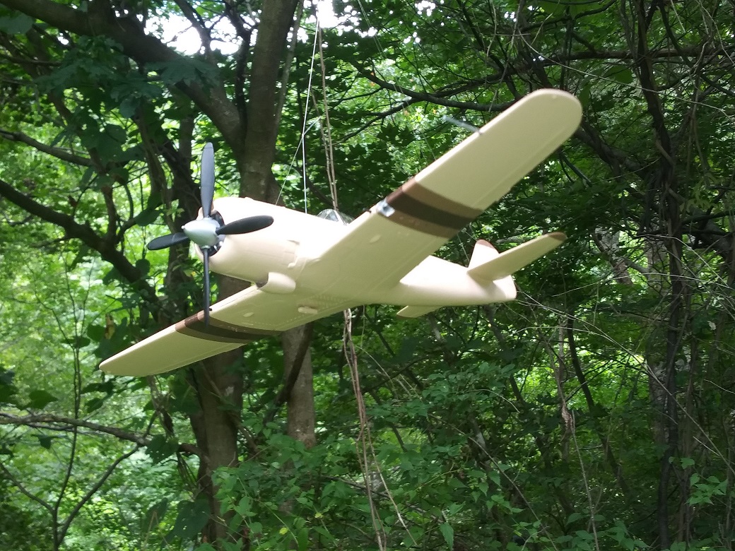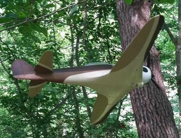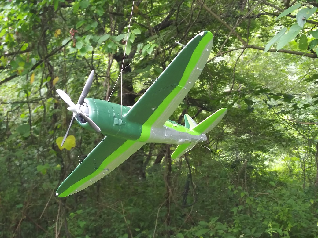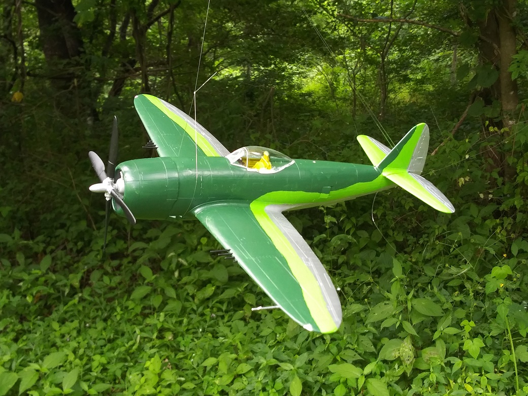 飛燕を図面で側面から見ると、胴体後部がずい分太く見える。設計者は垂直面の効果を狙ったそうだが、立体的に作ってみてももう少しスリムな方がいいのでは?と思ってしまう。主翼アスペクトが日本機の中では大きく、引き起こしで速度が落ちず、米パイロットは他の日本機と同じ戦い方はできなかったと聞く。
