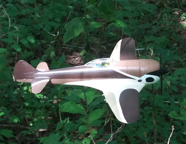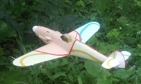 これも、再製作である。サンダーボルト、飛燕と立て続けにペイントをしていて、”芸術的ペイント”も何となく手詰まりになってワンパターン化してきていると感じた。何だか速そうに見えない。”速そうに見える”塗装を目指したのが、本機である。最初は貝澤徹氏の「蜻蛉」のように翼にアイヌ紋様を描き込もうと思ったが、”速そう”に見えないので止めにした。それはアイヌ紋様自体が速さを想像させないというより、自分に速さを想像させるアイヌ紋様を作り出す能力が足りなかったからだと反省している。