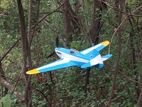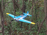 実はこの機体は、最近は青か緑を基にしたパターンが多くなっているので、真っ黄色の地に赤のパターンを考えていた。ところがイエローのプラカラーがない!。日本軍機の識別色の黄色では暗すぎる。結局青になってしまった。濃いブルーは翼端だけのつもりだったが塗っているうちに考えが変わっていき、濃いブルーをサンドイッチする形になった。これが良かった。大戦当時の日本の設計者が「主翼と尾翼の形は、バランスが取れていなければならない。」と言ったとか。その事はいつも頭の片隅に残っているので、尾翼の塗装も合わせてみた。