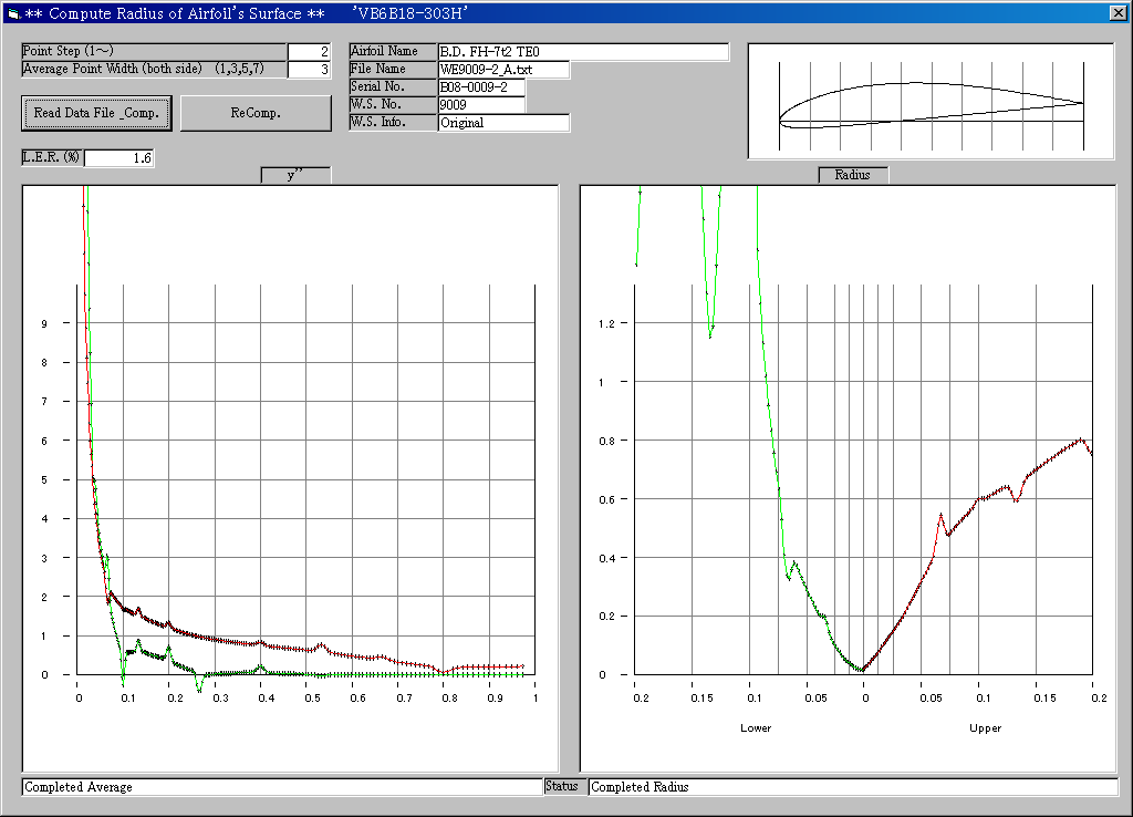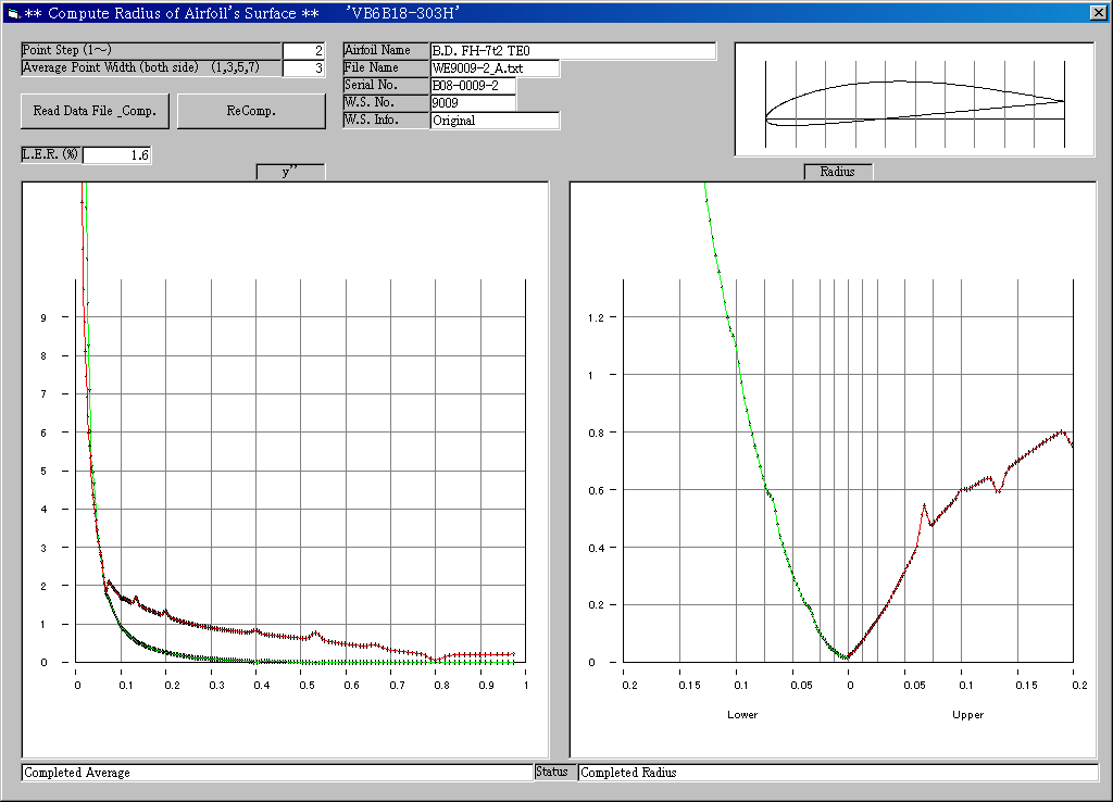 曲率半径算出ソフト(VB6B18-303H.exe)による検討