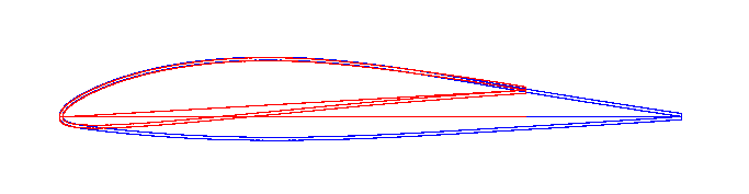 B.D. FH-7(B.2)より後縁厚を0としたB.D. FH-7 TE0を作り、翼端翼型B.D. FH-7t2 TE0を作る。後縁厚は、リブ設計の段階でつける。
