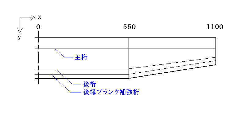 後縁プランク補強桁(桁前面位置):スパン方向各位置の後縁から 20 mm 前方