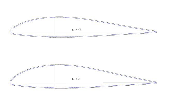 以上の事から、リブ・ポジョション 0, 50 mm それぞれの位置の翼型座標倍率は次のようになる。