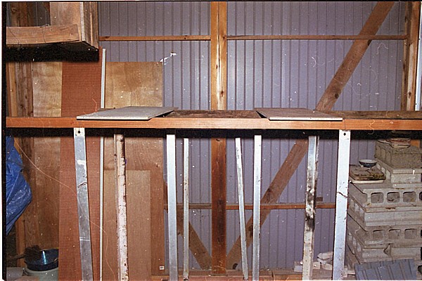 3月13日、土台コンクリの墨付け開始。今日は外部交渉に出ると決めていた日だったので、鉄筋を購入するため鉄筋用の設計図を描く。枠用コンパネ、鉄筋、セメント25kg×2袋を購入。コンクリを作るための、セメント・砂・砂利の配合比を調べ、1:3:6(強度を大きくする場合は1:2:4)であること、量的には1:3:6で6分量のコンクリが出来ることを知る。しかし、2立米の予定に対してどれだけのセメントを使うのかはとうとうわからなかった。販売店で調べてもらったが、15〜21袋も使うと言う。本当だろうか。とりあえず2袋買って、足りなかったら後で買い足すことにした。…余談だが、セメントは数年前まで1袋40kgであったが25kgになった。若者の体力不足が関係しているそうだ。自分も土工をやっていた頃、山中の現場で40kg袋を肩に担いで数百mを運ぶのは大変だったから、人ごととは笑えない。25kgは軽いなあ!