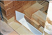 ②このままでは窯左右の断熱効果が異なるので、同じにするためにまず耐火レンガで閉じ(以前と同じ方法)、ブランケットを挟んで断熱レンガ(B−1、覗き穴部はLBK)で外側を押さえ、針金で固定する。