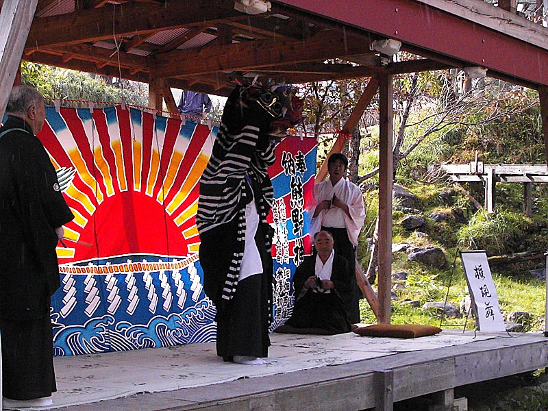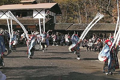 11月2日、恒例の秋の水車まつりが行なわれました。今年は20周年ということで写真美術館オープンに加え、端神同様炭と名水のふるさと、陸前高田・生出(おいで)から鹿踊(ししおどり)が特別出演として、片道5時間かけて来て下さいました。私も今から25年も前に秋田県角館町の近くの小さな部落の鹿踊を見たことがあり、楽しみにしておりましたがなかなか躍動感のある踊りで感激しました。思わず商売そっちのけでカメラ小僧になってしまった。